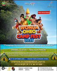 Ada satu acara yang sedang ramai diperbincangkan di Sulawesi Tenggara: Wonua Oheo Camp Fest 2025. Festival ini akan berlangsung pada 17–19 Oktober 2025 di Pantai Taipa Konawe Utara. Menghadirkan pengalaman camping, budaya, dan musik dalam satu kemasan seru bertema “Camping Bersama, Harmoni Alam dan Budaya.”Acara ini diselenggarakan oleh Pemerintah Kabupaten Konawe Utara melalui Dinas Pariwisata. Dengan tujuan memperkenalkan potensi wisata alam dan budaya daerah kepada masyarakat luas. Bukan sekadar kemah, Wonua Oheo Camp Fest 2025 dirancang sebagai ajang kolaborasi antara alam, seni, dan masyarakat lokal yang penuh inspirasi.